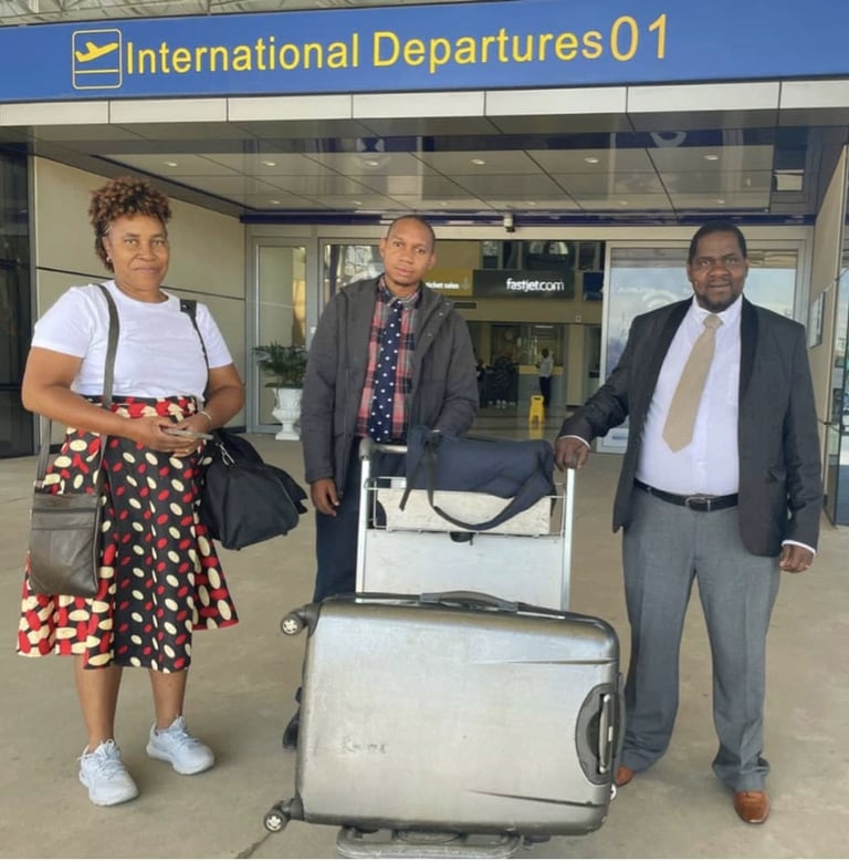 Photos below: Ready to check in for Kenya trip; Welcomed in Kenya by Prof Cathrine and Rehab patron