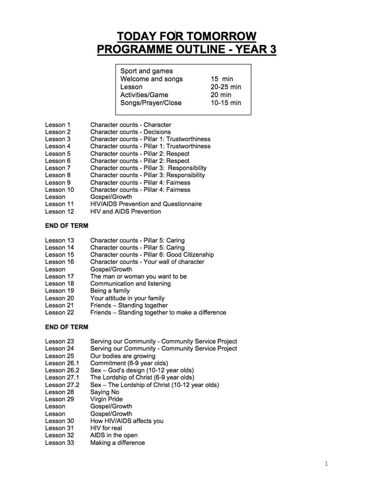Below you will find more information about the curriculum including the Pillars of Character and Table of Contents for lessons.